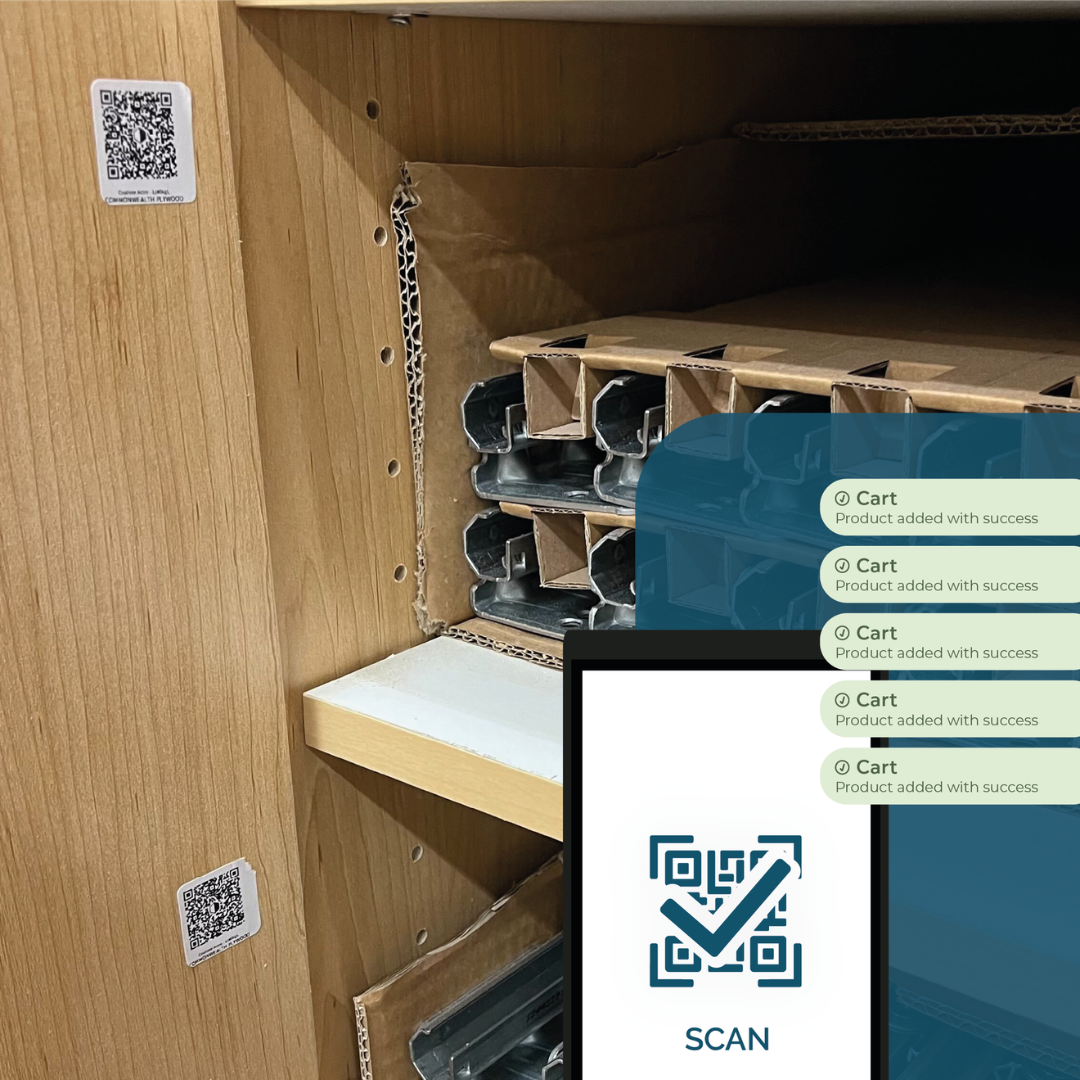 - Scan – Employees on the factory floor or in the showroom identify a product that needs restocking.